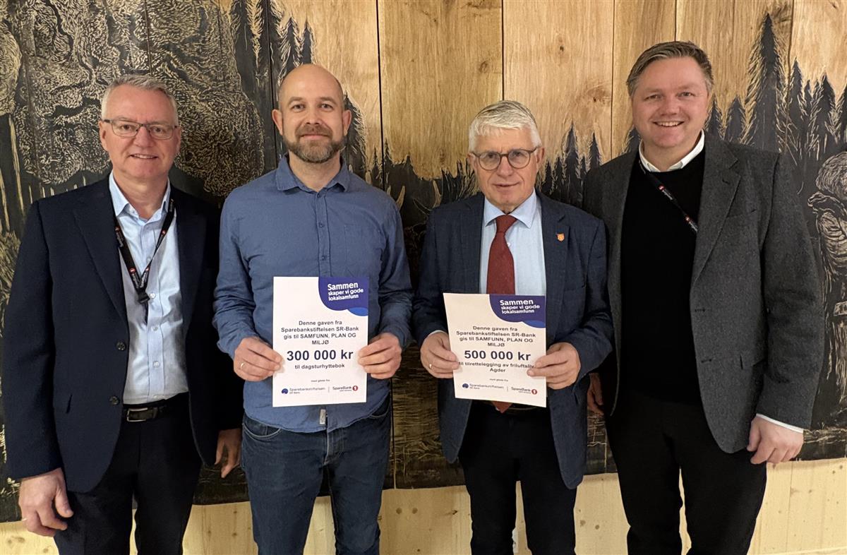 Sparestiftelsen SR-bank lyser hvert år ut midler til friluftslivstiltak. Gjennom ordningen ønsker stiftelsen å bidra til prosjekter som gir økt aktivitet i naturen, tilrettelegger for ferdsel og gir økte naturkunnskaper. Agder fylkeskommune fikk nylig overrakt en gave til to friluftslivsprosjekter.