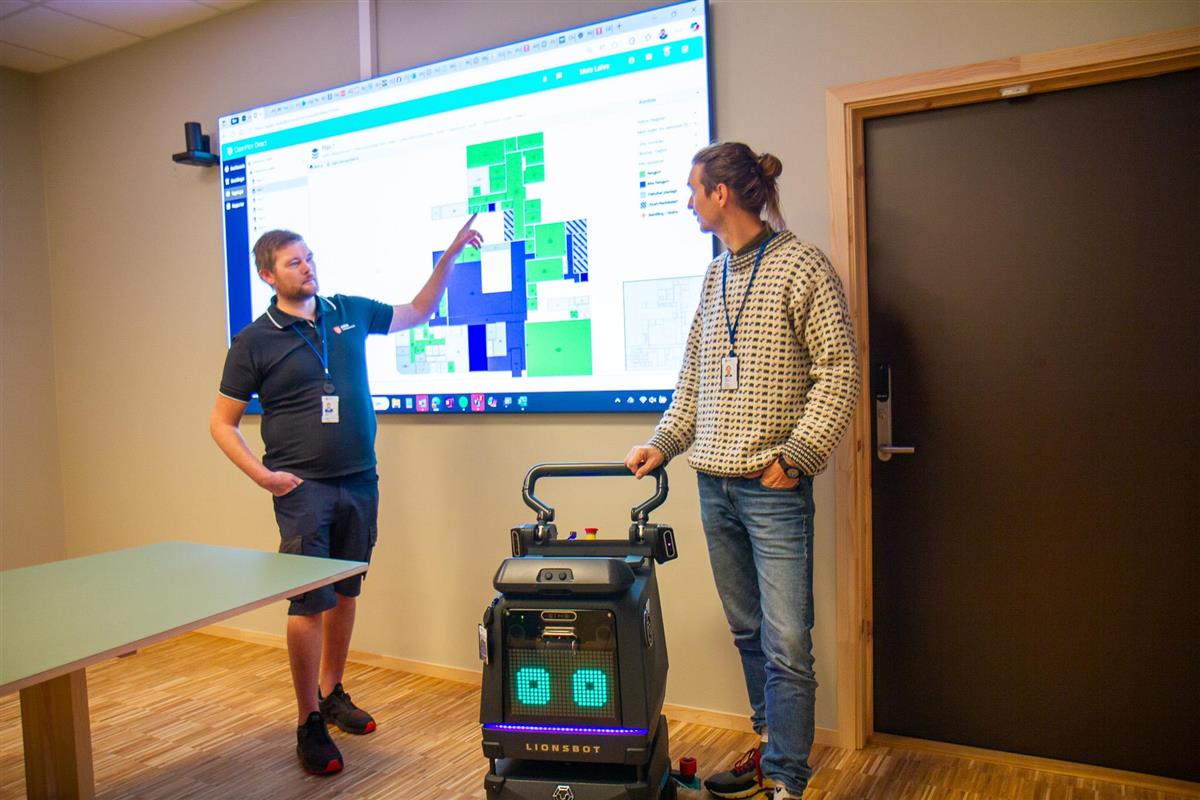 Fylkesdirektør for organisasjon og tannhelse, Knut Lindland og avdelingsleder for kantine og renhold, Mats Andre Løhre viser vei med datadrevet renhold.
