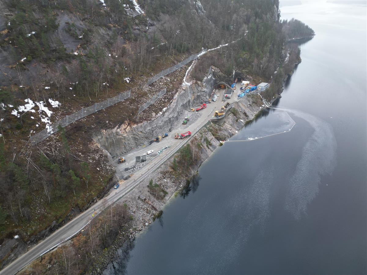 Anleggsområdet ved fv. 42 Gåsehellertunnelen 11. mars 2026.