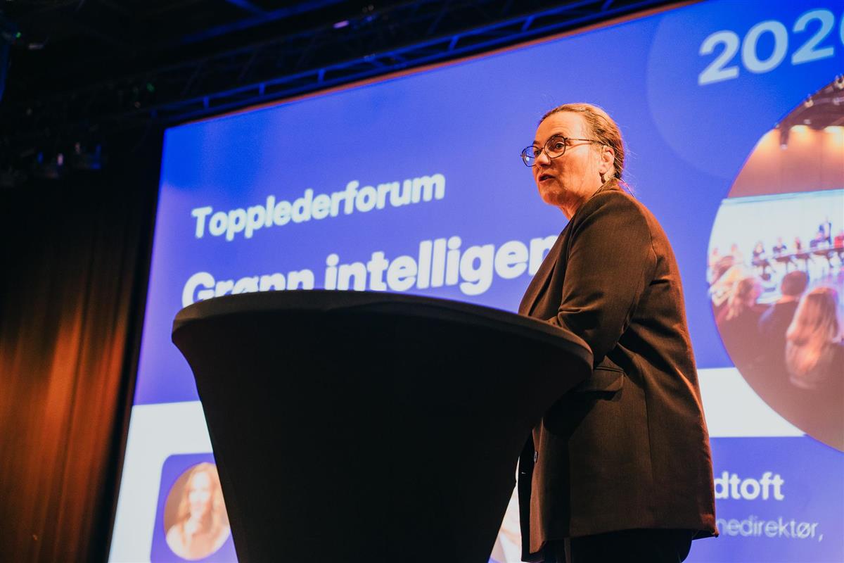 Ho utfordra deltakarane til å tenke kritisk rundt KI, samstundes som ho peika på korleis teknologien kan bli ein kraftfull motor for grøn omstilling dersom han vert brukt ansvarleg.