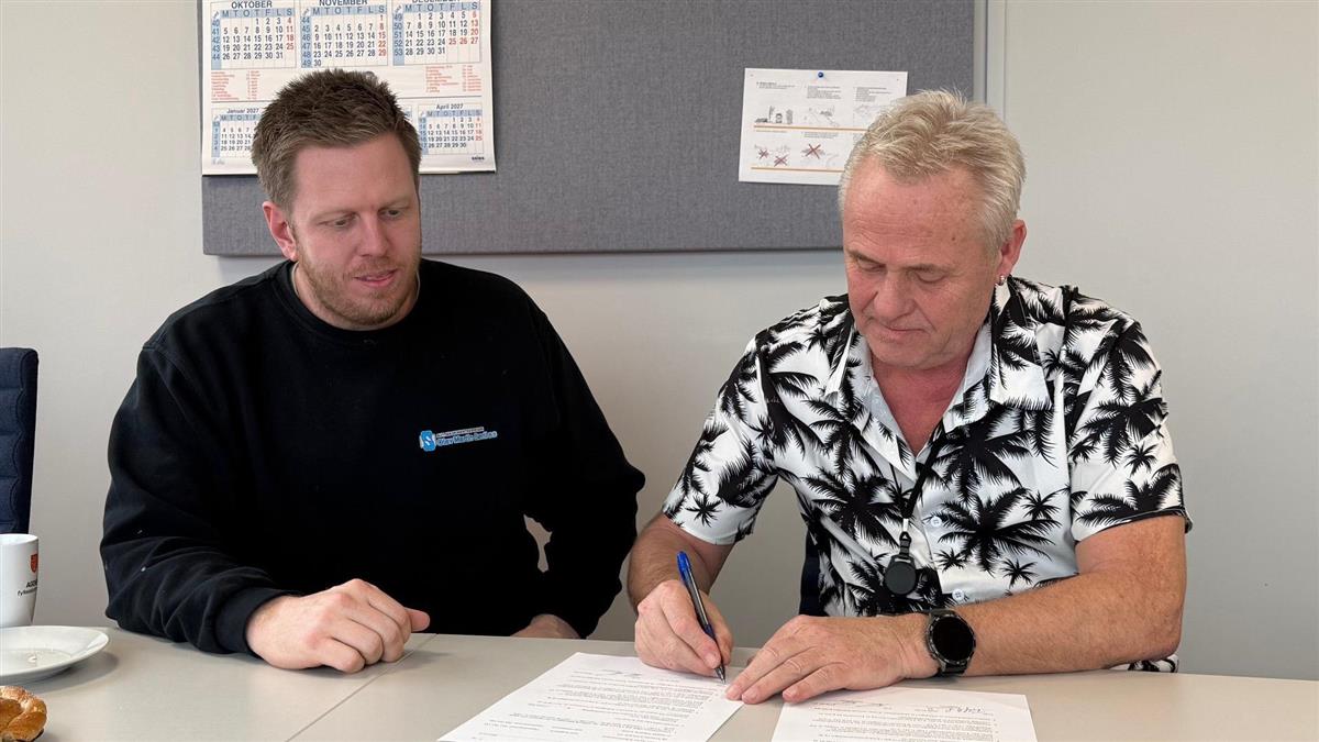 Fra venstre Frode Sørli (Daglig leder Nomeland Maskin as) og Rolf Ove Lunden (Avdelingsleder for vegdrift Agder fylkeskommune)