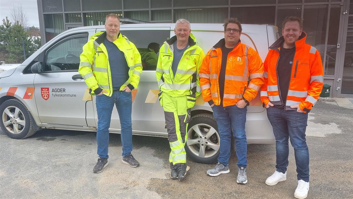 Disse har ansvaret for kontrakten de neste 7 årene: Fra venstre Arild Tveit (byggeleder AFK), Geir Ove Føreland (kontollingeniør AFK), Even Simensen (Avdelingsleder Nomeland Maskin as) og Frode Sørli (Daglig leder Nomeland Maskin as)