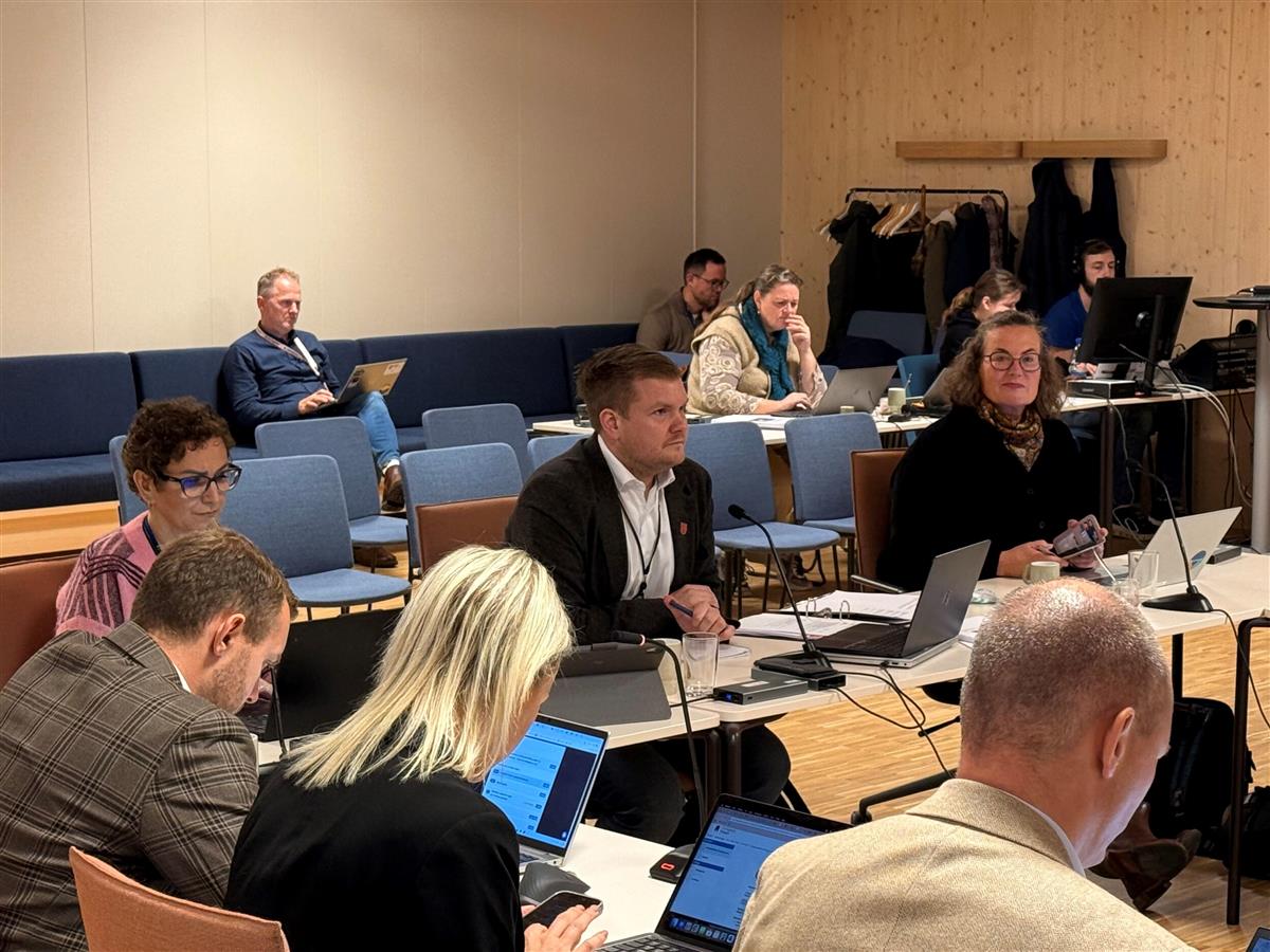 Nyvalgt fylkesvaraordfører Rune André Sørtveit Frustøl (KrF) ledet for første gang deler av fylkesutvalgets møte.