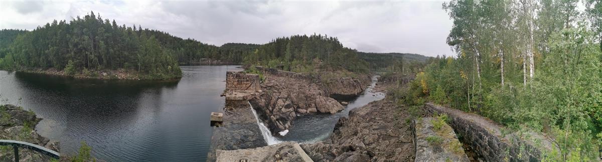 Fremfor deg ligger restene etter vannet Lona som ble demmet opp for å forsyne Høie fabrikker med vannkraft og elektrisitet. Høie fabrikker var en hjørnesteinsindustri i samfunnet som vokste frem på Mosby med vannkraft som avgjørende forutsetning. Vannmagasinet ble senket og bare fargeskillet i berget viser hvor høyt vannet i magasinet en gang stod.