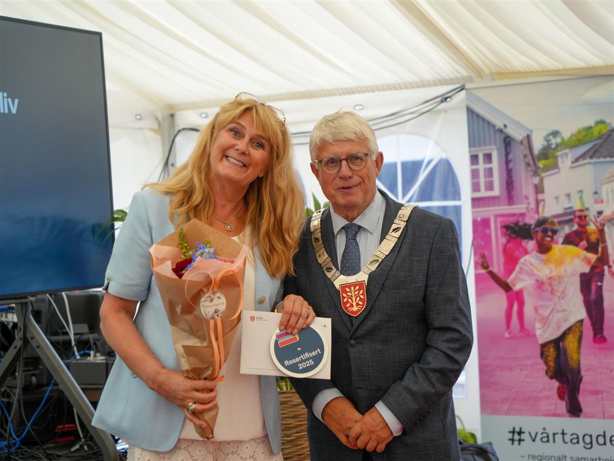 Statsforvalteren i Agder ved Gina Lund mottar andre gang sertifisering fra fylkesordfører Arne Thomassen