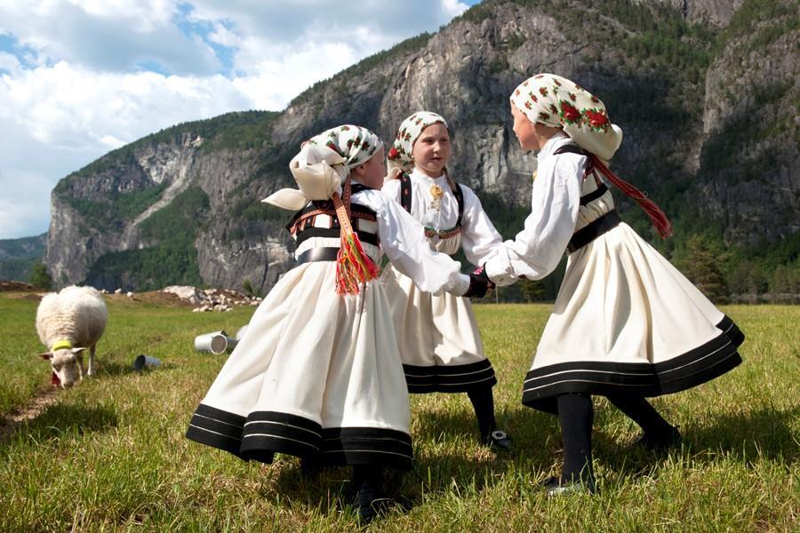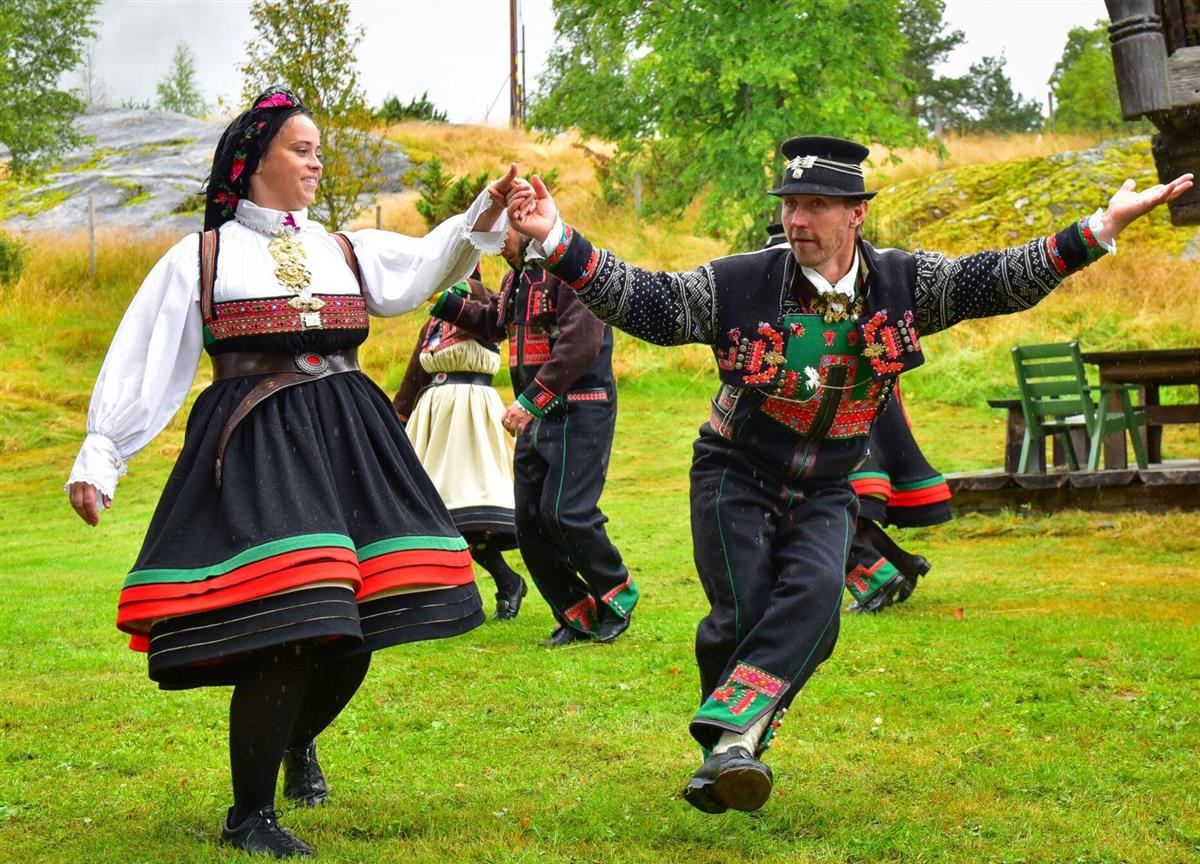 Eline Øyen Grave og Tor Espen Helle danser Setesdalsgangar.