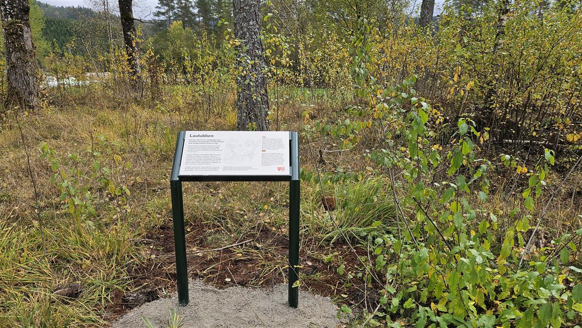 Sammen med lokale ildsjeler har vi tilrettelagt området for besøkende, alt i tråd med retningslinjene for universell utforming. Først ble det anlagt en gruslagt sti gjennom feltet, og våren 2024 kom hovedskiltet på plass. I september kunne vi også sette opp to mindre informasjonstavler langs stien: én som forklarer hvordan arkeologer jobber, og én som forteller sagnet om holmgangsmannen Laulubben – som ifølge tradisjonen ble hauglagt nettopp her.
